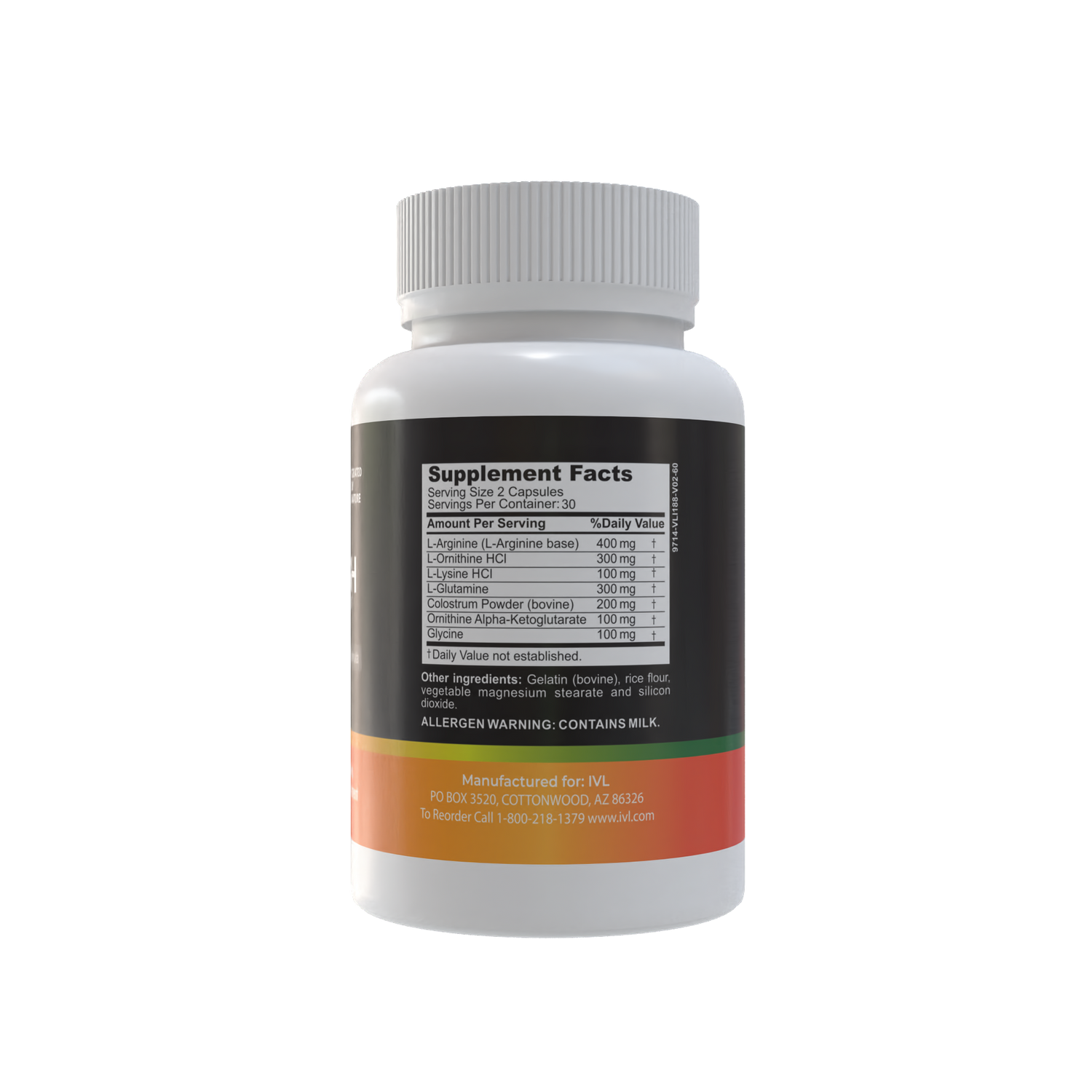 HGH combines key amino acids and natural ingredients including L-Arginine, L-Ornithine HCl, L-Lysine HCl, L-Glutamine, Colostrum Powder, Ornithine Alpha-Ketoglutarate, and Glycine to support your overall nutritional needs. Incorporate it into your balanced lifestyle to promote nutritional health and support your journey toward feeling your best every day.