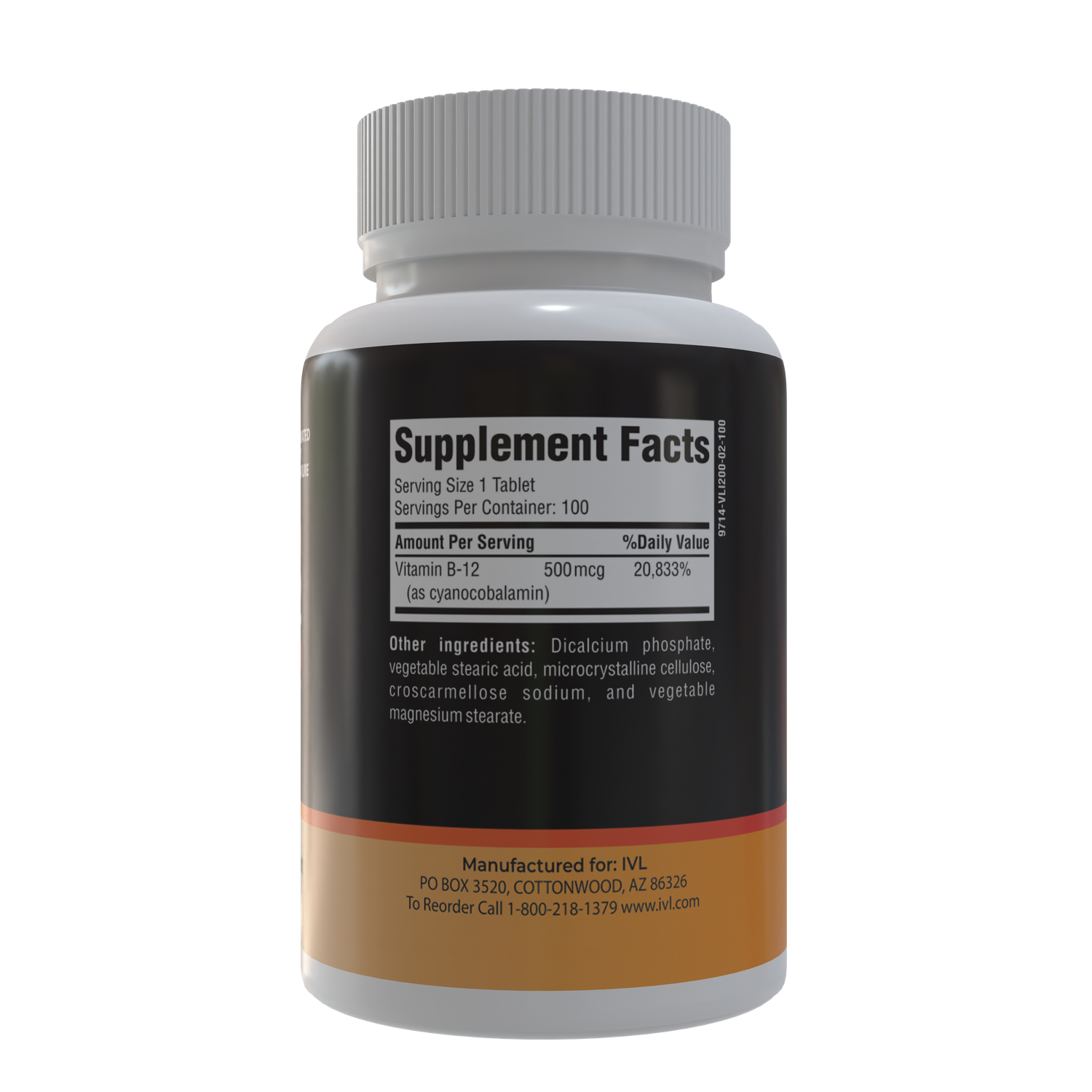 500 mcg of Vitamin B-12 per tablet to support the body’s natural energy metabolism and help maintain healthy red blood cells. Add Vitamin B-12 to your cart today!